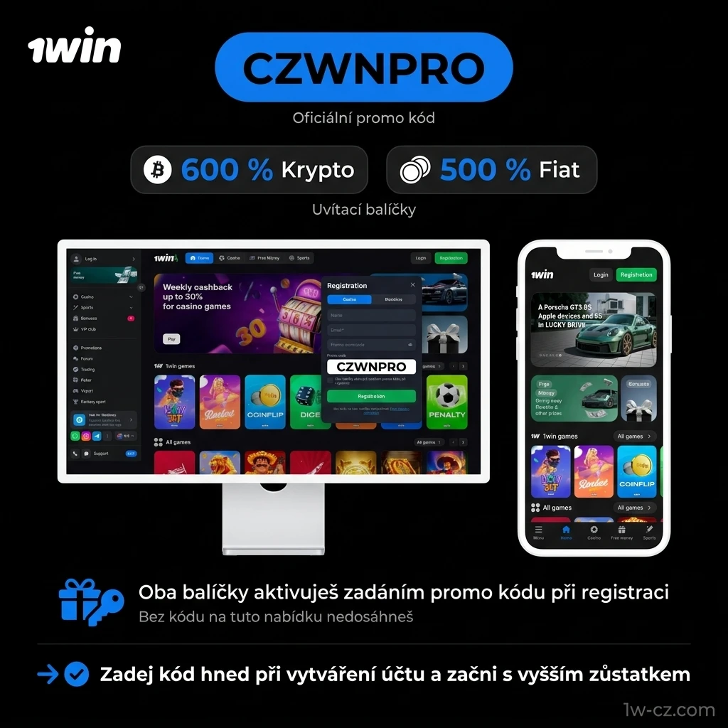 Oba balíčky aktivuješ zadáním promo kódu při registraci. Bez kódu na tuto nabídku nedosáhneš. Tato možnost je součástí globální nabídky 1win pro hráče z České republiky.